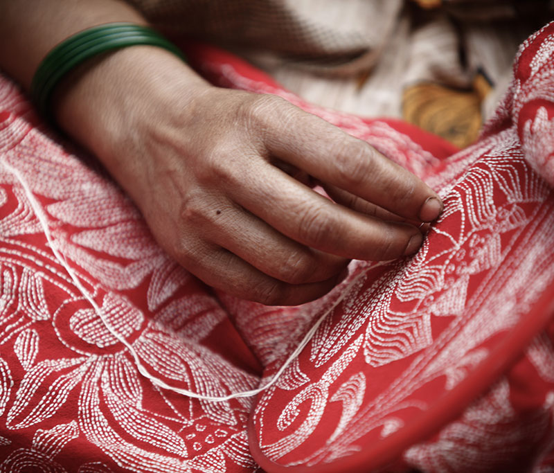 Our founder, Shamlu Dudeja got introduced to Kantha in 1986, and realized the potential of the Kantha artisans whom she met at a local fair. She took it upon herself to further the cause of reviving and revising Kantha.