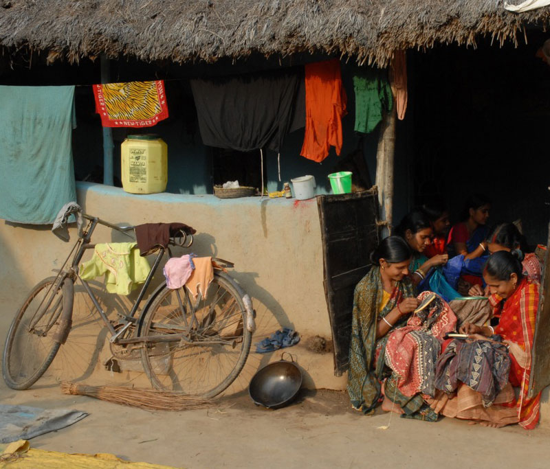 MKC endeavors have successfully been able to unshackle Kantha from the traditional confines of a quilting stitch and allowed it soar to the top range of haute couture, haute decor and stitch portraiture. Tremendous promotional efforts to the simple running stitch have impacted the lives of rural women beyond all expectation. From the handful of artisans Shamlu started with the number has grown manifold.