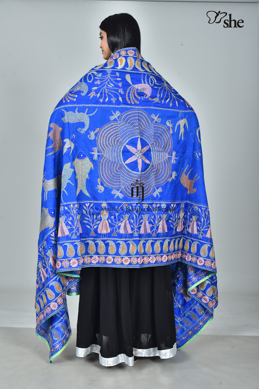 ROYAL BLUE SILK MANDALA AND ANIMALS.
